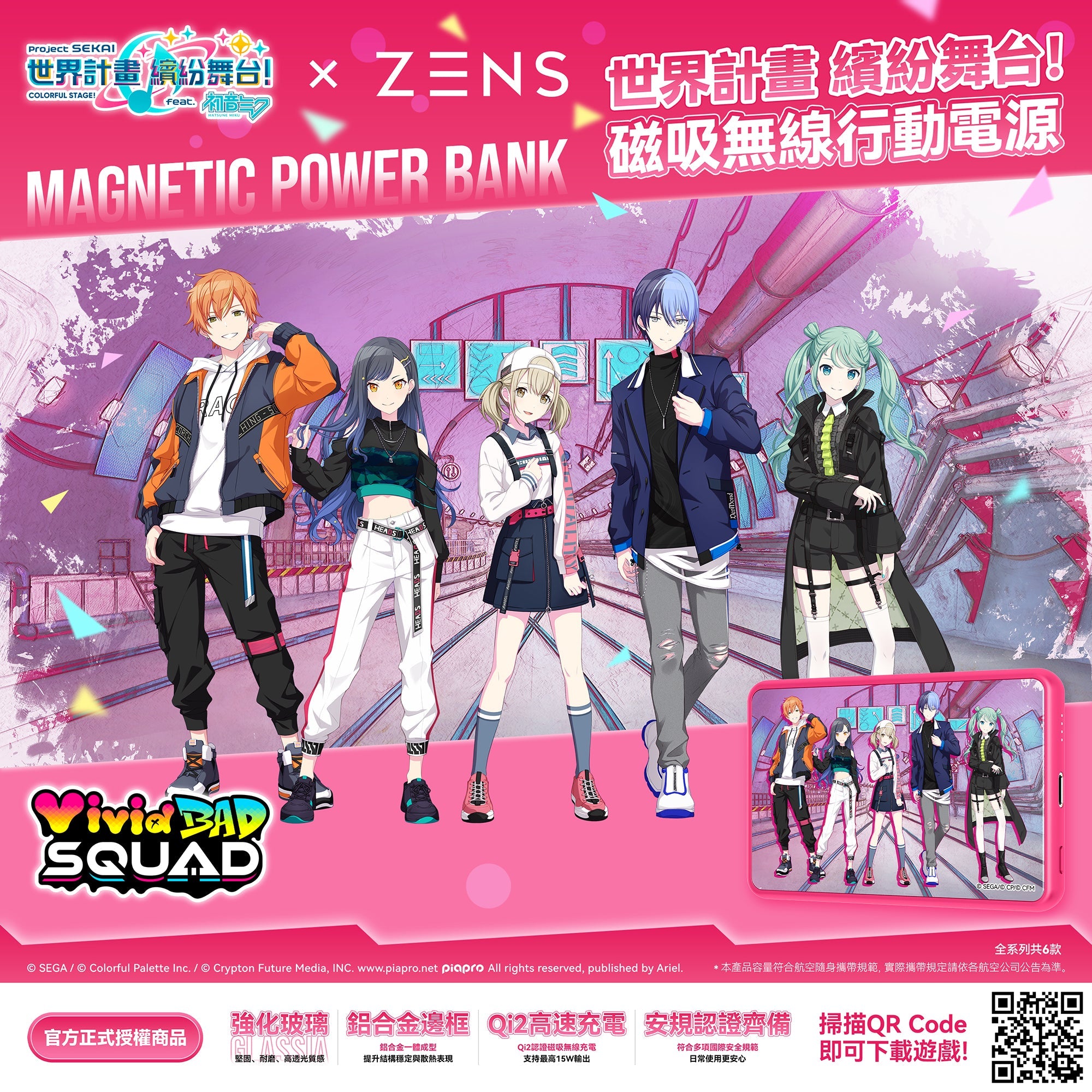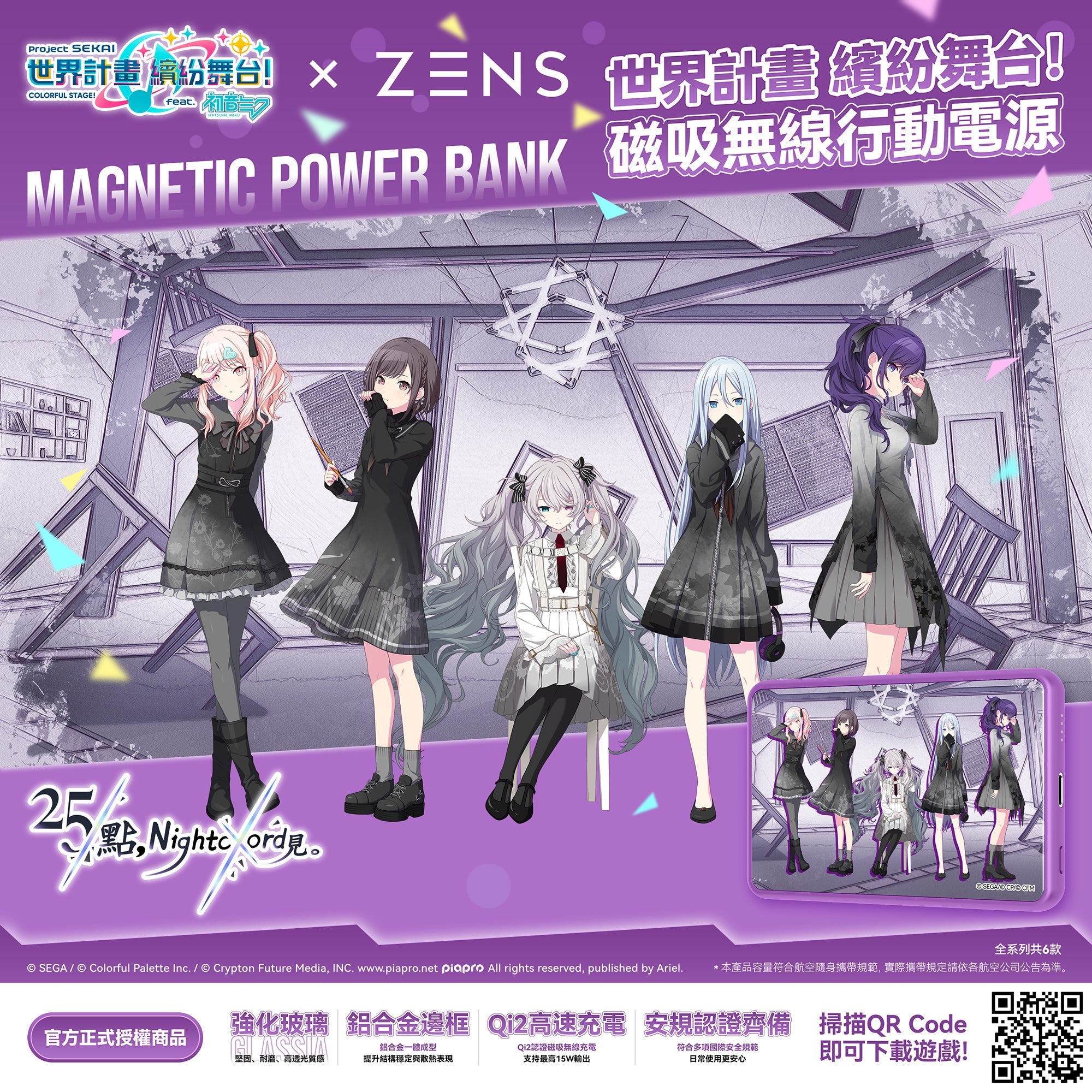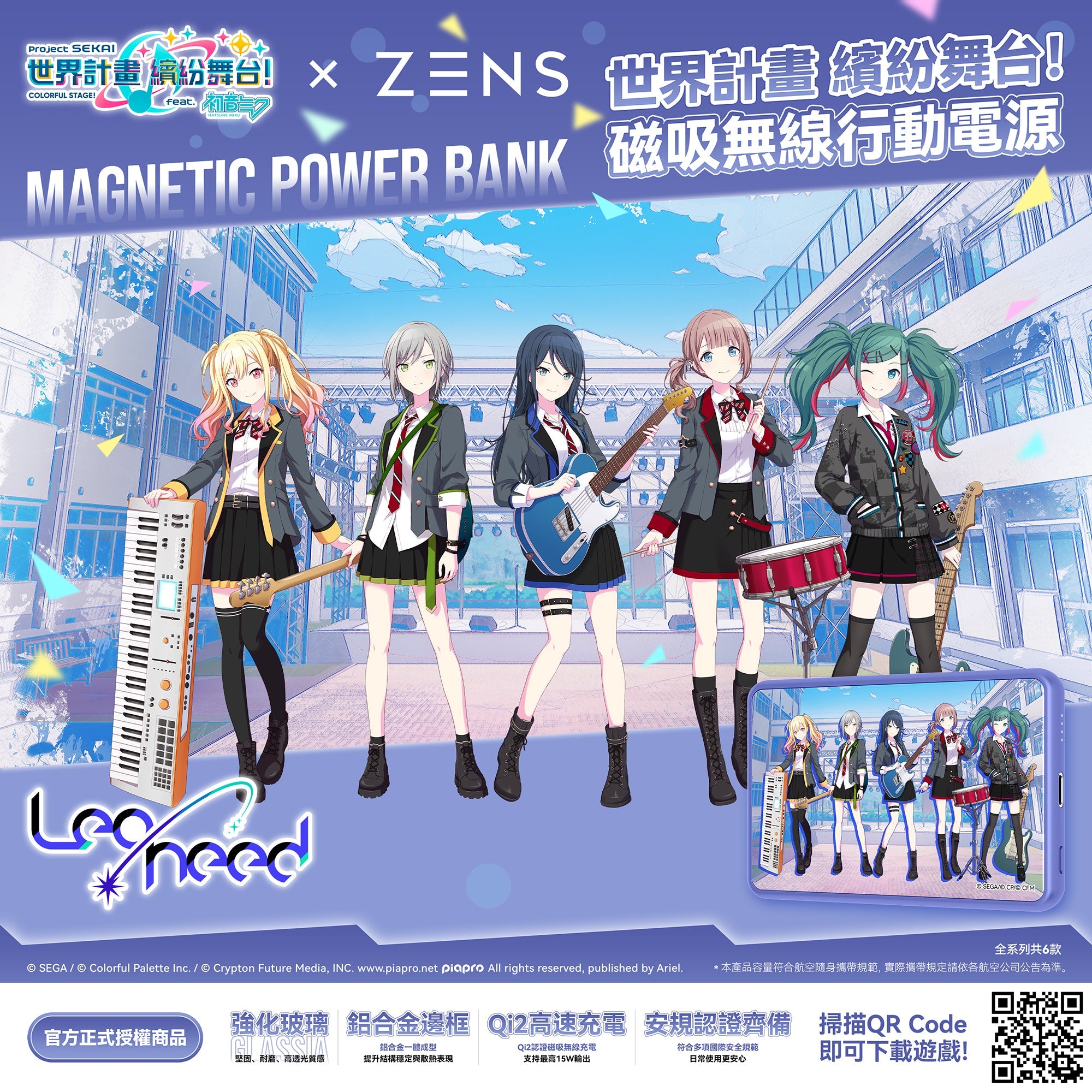 世界計畫 繽紛舞台! × ZENS GLASSIA Qi2 磁吸式行動電源 - Leo/need版